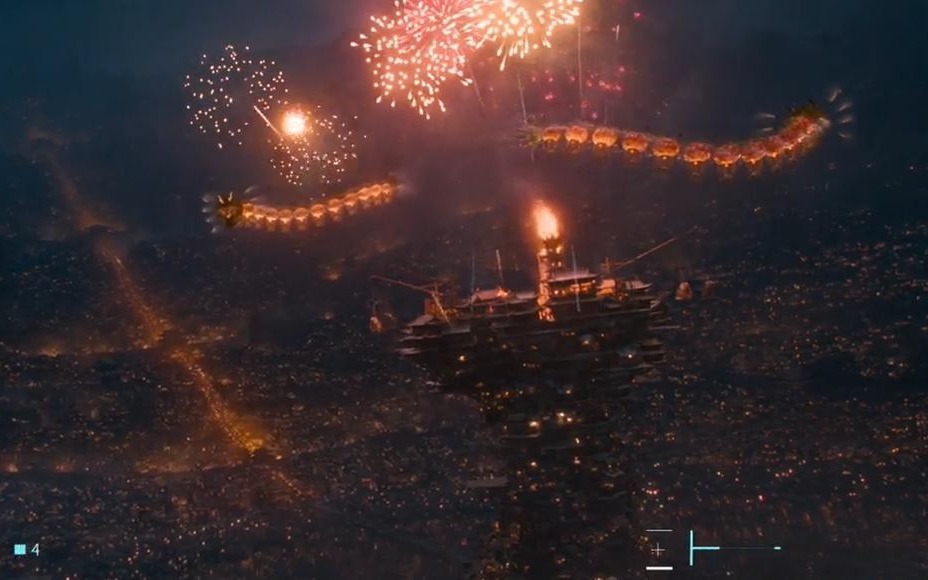 这一次云中城的规模比第一部大了不止十倍,可以算是影片中最震撼的视觉元素之一,尤其是在IMAX镜头下的云中城真的令人惊叹: