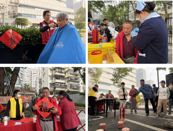 此外,各特色摊位也提供了丰富的暖心服务:义剪摊位上,理发师手法娴熟,为老年人、儿童等群体量身打造清爽发型,解决理发不便难题;义诊摊位前,医护人员细致为居民测量血压、讲解疾病预防与用药知识,用专业守护居民健康;写春联摊位热闹非凡,书法爱好者挥毫泼墨,一幅幅吉祥春联、一个个苍劲“福”字,承载着新春美好期盼;亲子互动与垃圾分类宣传摊位则成为孩子们的乐园,趣味游戏不仅增进了亲子感情,更让居民在互动中掌握垃圾分类技巧,营造了环保共治的良好氛围。